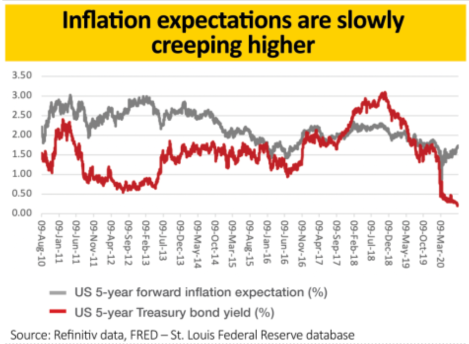 But central bank money-printing schemes, ballooning government deficits, supply-chain disruption (if production is brought back home from China, for example) and firms jacking up prices to cover extra Covid-related costs could yet combine to create a surprise.