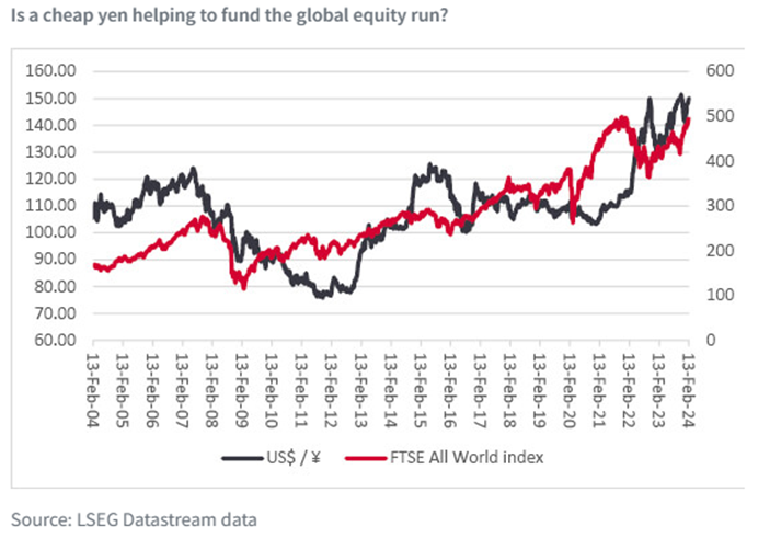 Please see the below article from AJ Bell detailing their insights into the depreciation of the Yen and its potential effect on markets. Received 26/02/2024.