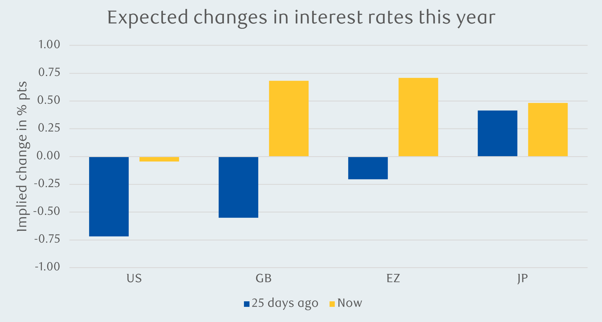 Unlike other major regions, there has been little change in Japanese interest rate expectations.
