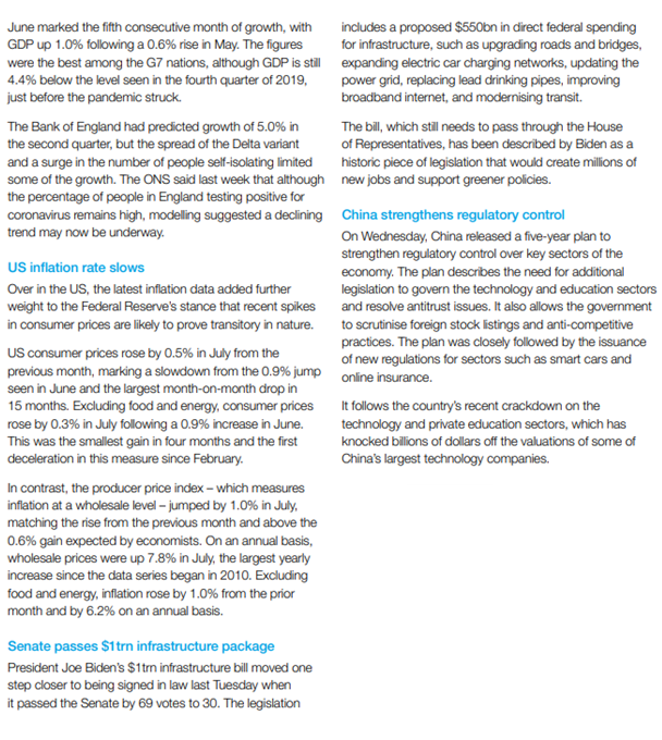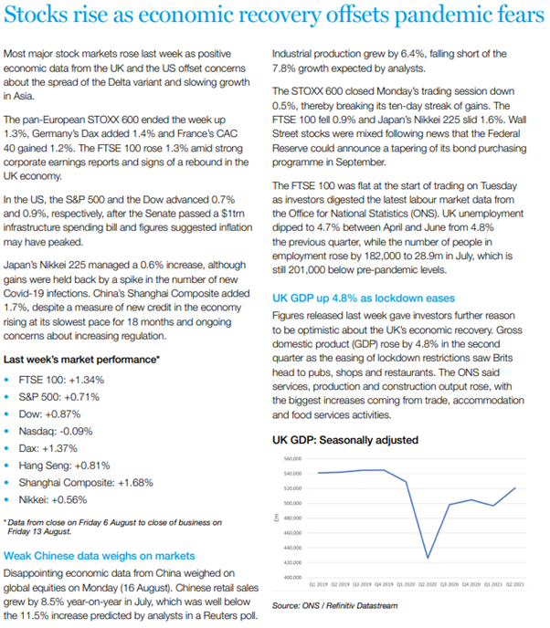 Please see below an update on how markets performed last week from Brewin Dolphin: