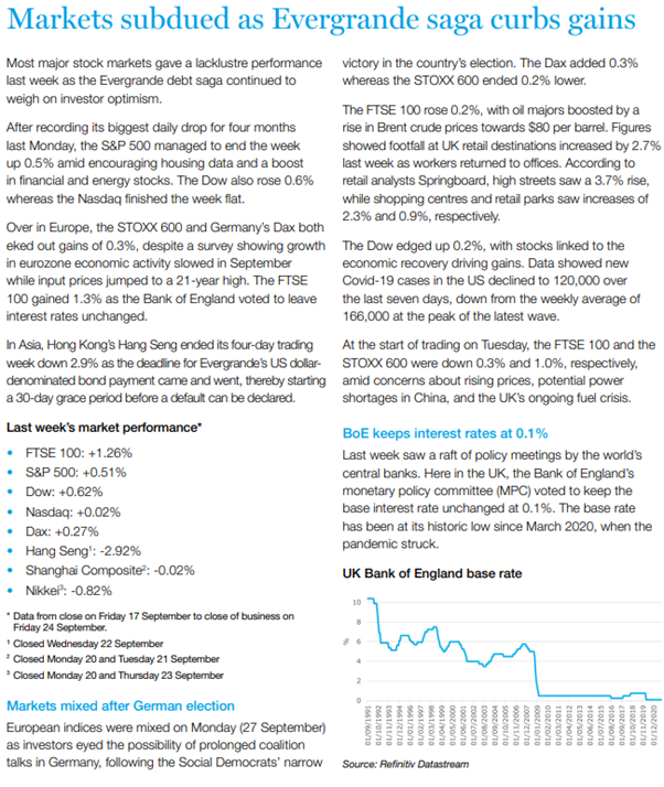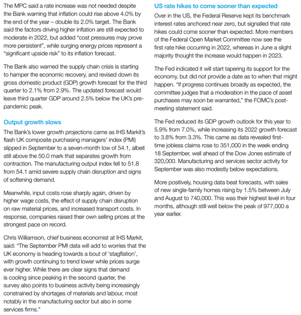 Please see below Brewin Dolphin’s latest market summary, which was received yesterday (28/09/2021) afternoon: