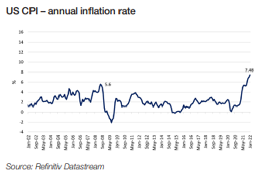 Soaring demand and lack of supply pushed US inflation to its highest level in 40 years in January. Consumer prices rose by 7.5% from a year earlier, and by a bigger-thanexpected 0.6% from the previous month, according to the Bureau of Labor Statistics.
