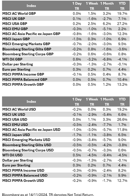 Please see the below article from Brooks Macdonald, analysing the key factors currently affecting global investment markets, received this morning 14/11/2024: