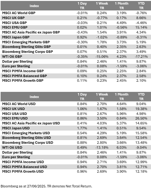 The US S&P500 equity index edged up +0.80% in US dollar price return terms yesterday, leaving it just 0.05% below its February record. In contrast, the broader MSCI All Country World Index (also in US dollar price return terms) has already got there – hitting another fresh all-time closing high yesterday and in doing so notching up its seventh fresh record high this month. That performance picture however includes a boost from a weaker US dollar currency so far this year – for context, in sterling price return terms, that same global equity index is still below its January record high.
