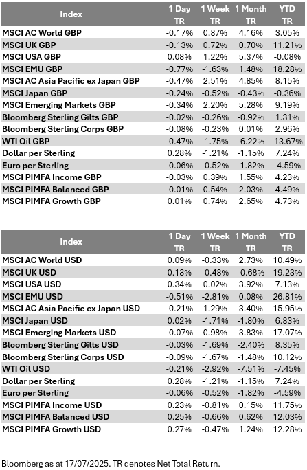 Please see below, todays Daily Investment Bulletin from Brooks Macdonald covering their thoughts on markets and the ongoing Geopolitical Issues. Received today – 17/07/2025: