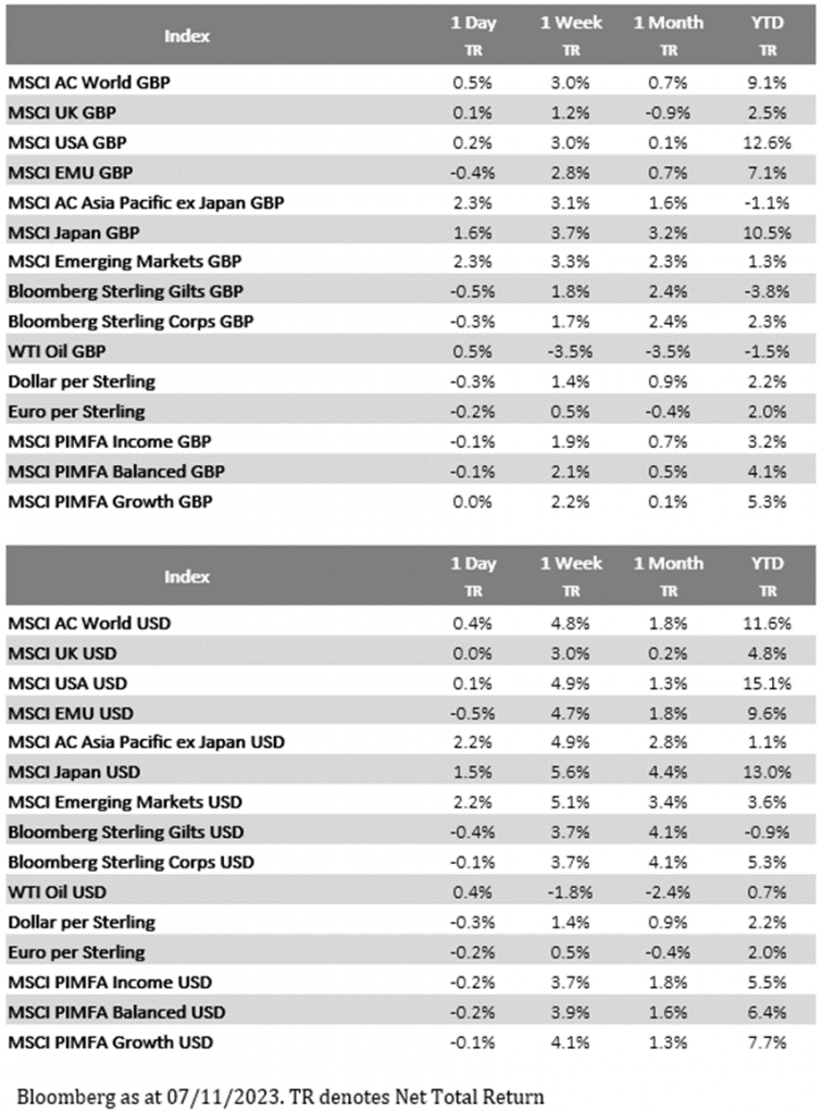 Please see below, Brooks Macdonald’s Daily Investment Bulletin which outlines the key factors currently affecting global markets. Received this morning – 07/11/2023