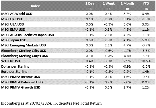 Global markets have been rather quiet over the last 24 hours given Presidents’ Day holiday in the US. The STOXX 600 index edged up by 0.16%, continuing its four-week streak of gains and reaching a new two-year high. The index now hovers just shy of its record high from January 2022, suggesting the potential for a new milestone in the near future.