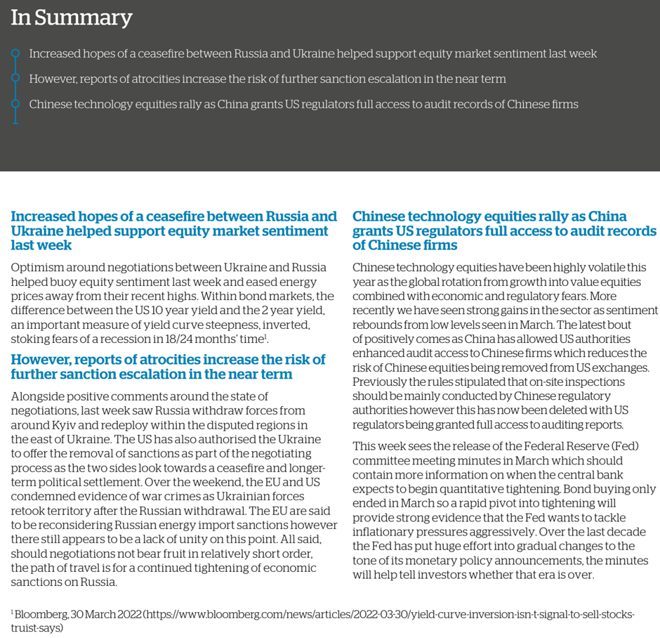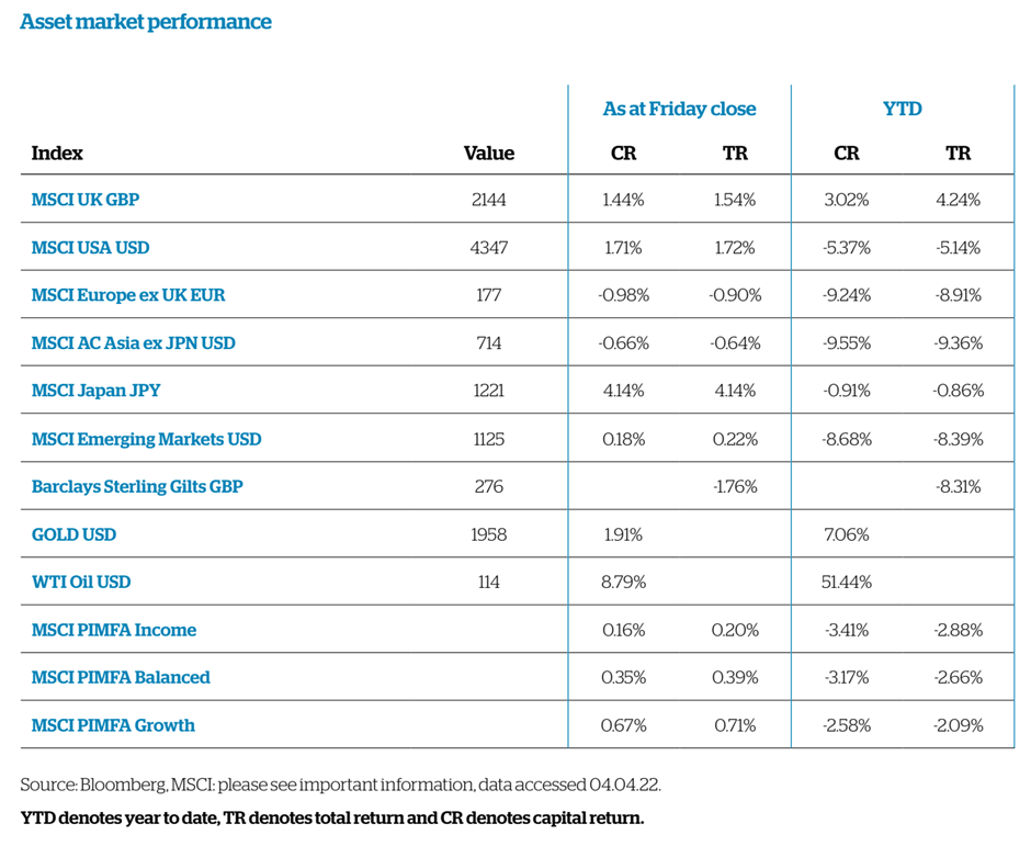 Please see below Brooks MacDonald’s summary of what happened in markets last week: