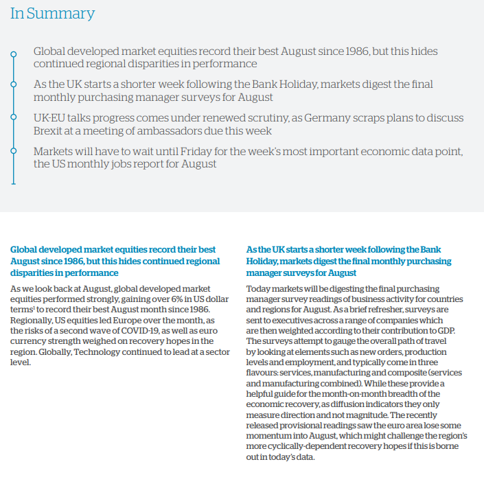 Please see below an article published yesterday (02/09/2020) by Brooks Macdonald, which outlines their latest views on markets:
