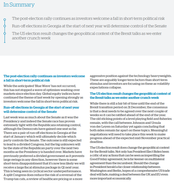 Please see below the latest bulletin from Brooks Macdonald, which has just been received and provides their weekly market commentary: