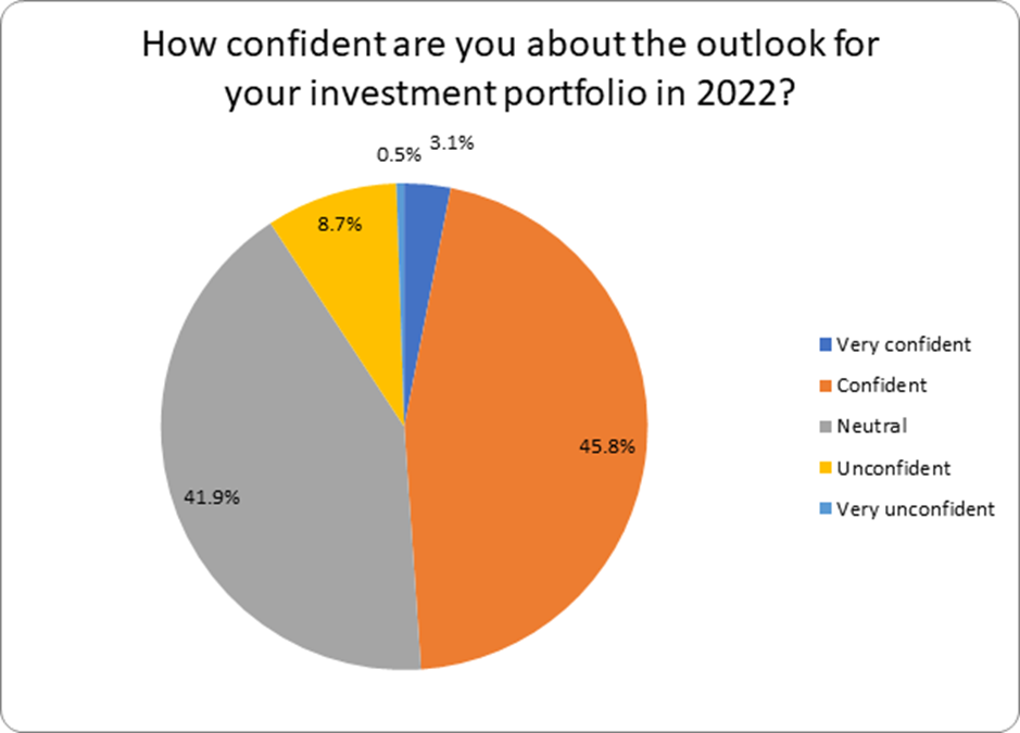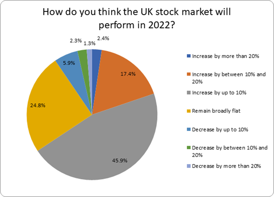 On the whole though, investors see the glass as half full rather than half empty. About 50% were confident or very confident about their investments in 2022, and around four in ten were neutral. That’s also reflected in forecasts for the Footsie, with two thirds of investors (65.7%) expecting the UK stock market to make further ground over the course of the coming year. Almost half of investors expect single digit returns in 2022, which suggests investors aren’t getting carried away, and are settling in for a more modest year for growth than 2021.