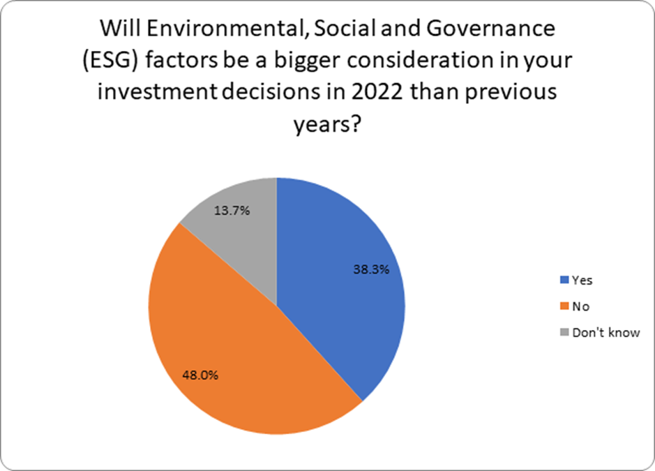 Investors are also becoming more attuned to ESG considerations, with four in ten (38.3%) saying these were going to play a bigger part in investment decisions in 2022. There’s already been a groundswell of interest in ethical funds in the last two years, and our survey suggests this isn’t going to abate in 2022. More than two thirds of investors also said they think there should be grater clarity over companies’ net zero plans.
