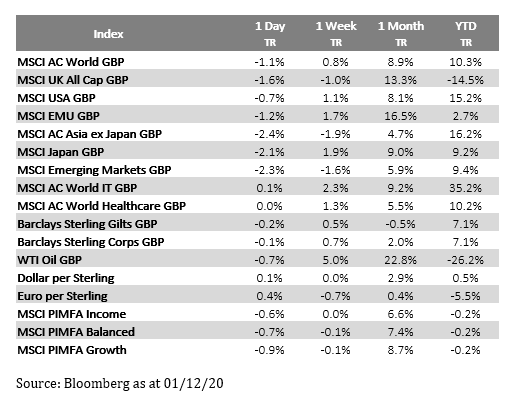 Please see below update received from Brooks Macdonald this morning. It explains where the markets stood by the end of November, as the world continues to wait for vital vaccine efficacy results in the fight against Covid-19.