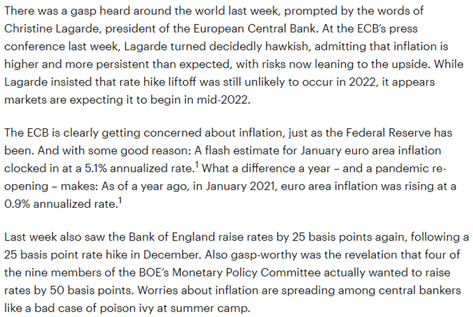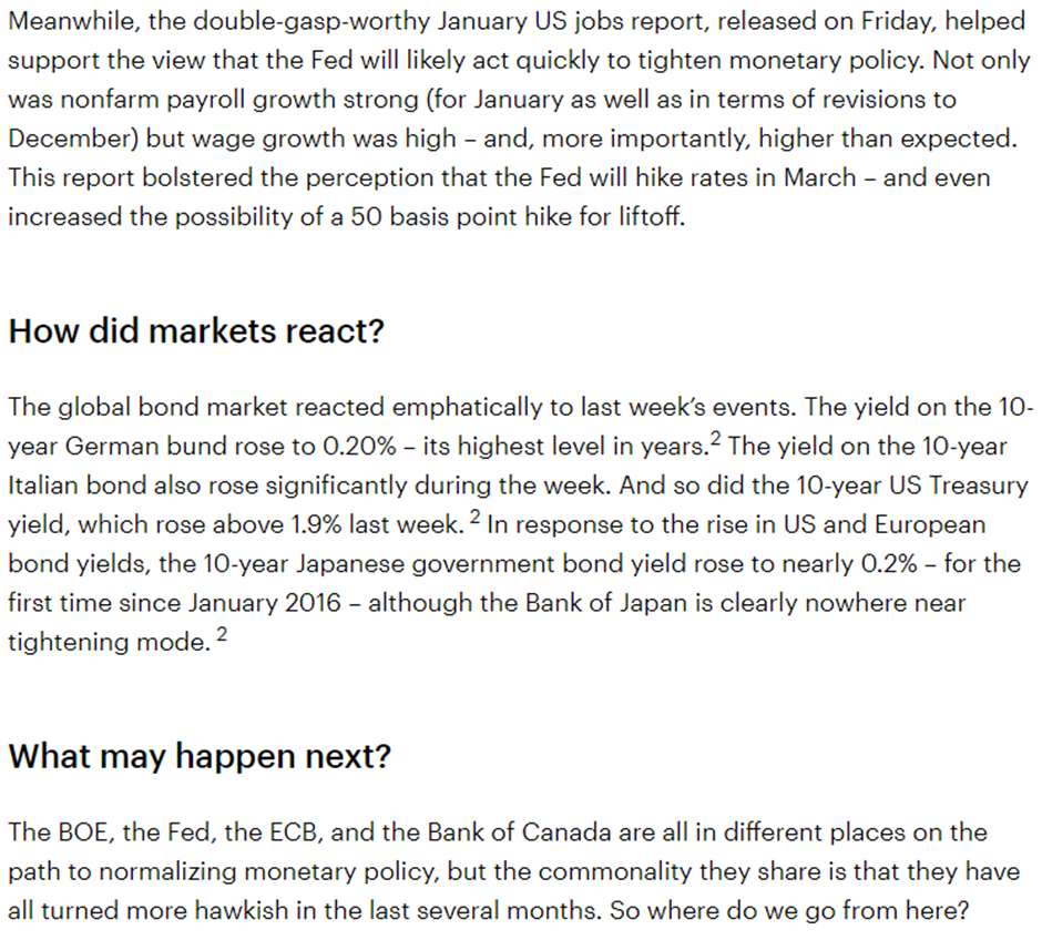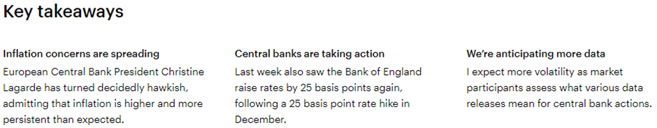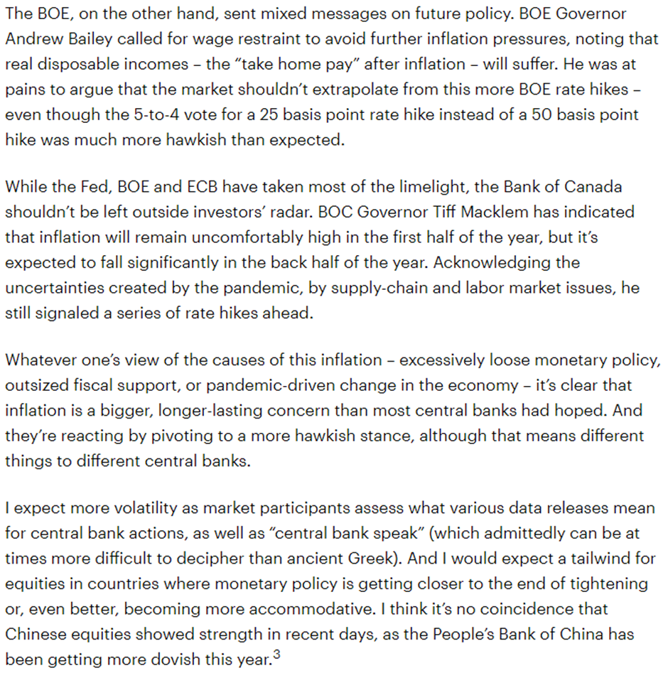 Please see below an article published by Invesco on Wednesday (09/02/2022) and received yesterday (10/02) afternoon detailing their current views on Central Bank’s policy changes:
