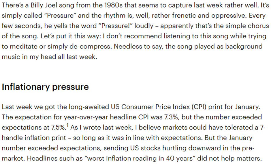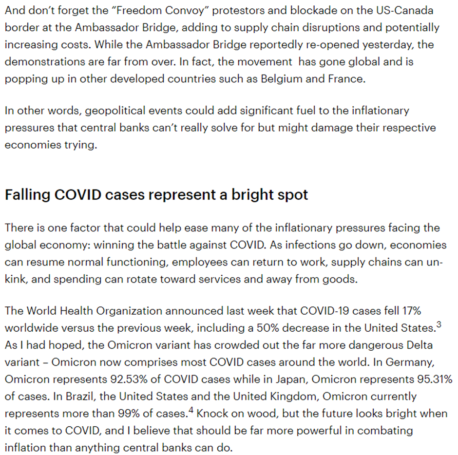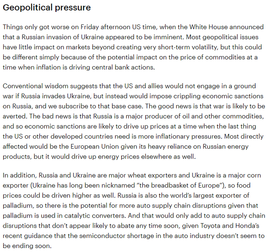Please see below an article published by Invesco on Tuesday (15/02) and received yesterday afternoon, which covers their views on inflationary pressures and geopolitics and how these are impacting on markets: