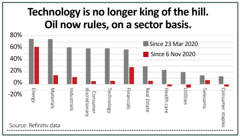 Technology continues to grab the headlines, especially as a raft of new initial public offerings tempts investors’ wallets. But miners, industrials and consumer discretionary stocks have all beaten tech over the past 12 months and oil has been the best performer of the lot, to reaffirm the adage that the darkest hour is before the dawn.