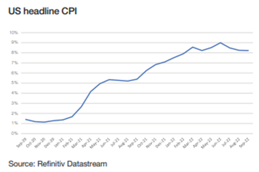 Last week’s US inflation data cemented expectations for another 0.75 percentage point interest rate hike by the Federal Reserve. The headline consumer price index (CPI) rose 8.2% year-on-year in September, only slightly lower than the 8.3% annual rise recorded in August.