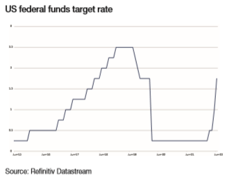 Last week’s economic headlines were dominated by the US Federal Reserve’s decision to increase interest rates by 75 basis points (bps), its steepest rate hike for nearly three decades. This takes the level of its benchmark funds rate to a range of 1.5-1.75%, the highest since just before the pandemic hit.