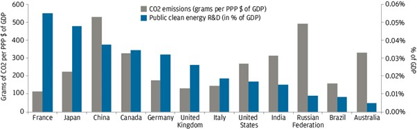 Exhibit 1: Government investment in greening the economy and level of CO2 emissions