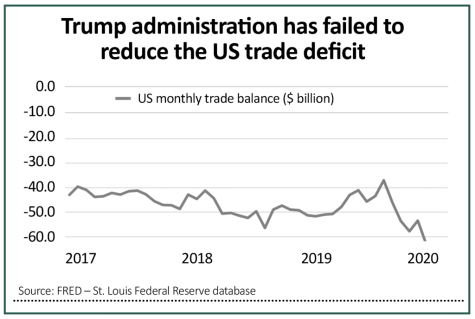 Second, the president’s trade war with China unsettled markets and seemed to bring no great economic benefit. The US trade deficit has surged back toward its all-time high, with the result that dollars are flowing out of America to pay for the overseas-produced goods that consumers are sucking into the country.