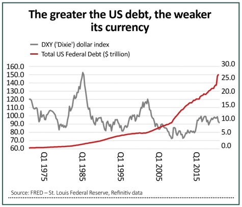 Anyone who feels that Covid-19 can be contained, and the world builds a reliable recovery, will also fight shy of the buck. Triffin’s theories imply that a weak dollar is the natural result of a strong US economy and robust global trade flows – both of which would logically benefit emerging markets and commodities, asset classes that traditionally do well when the dollar is weak.