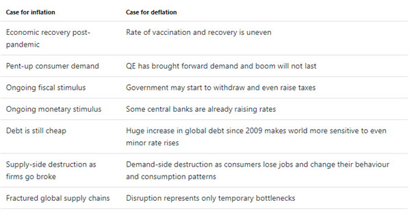 No-one knows what is coming next – inflation, deflation or even stagflation – and investors cannot afford to be too dogmatic about their portfolio allocations, as the three different outcomes require a different response from investors as they seek to augment or at least protect their wealth.