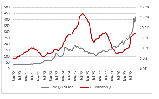That was also when gold really came into its own, as investors shunned cash and paper assets in favour of ‘real’ assets.